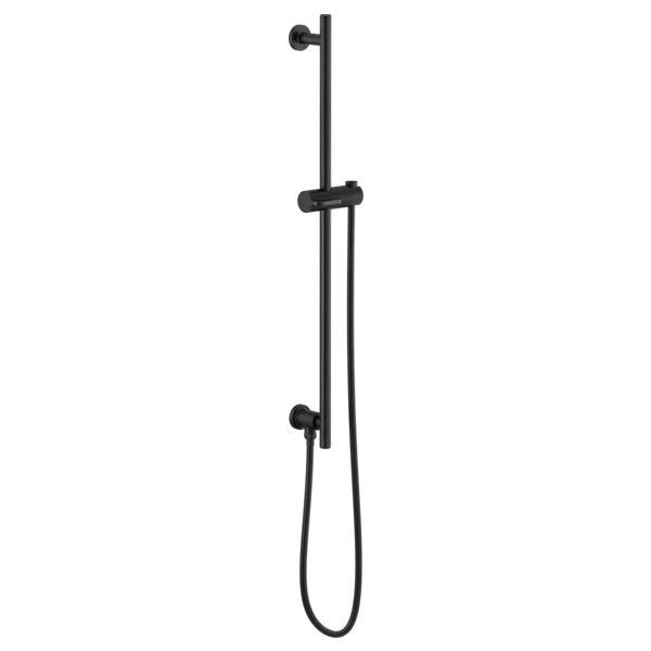 74792-BL Matte Black Essential Shower: Linear Round Slide Bar With Hose
