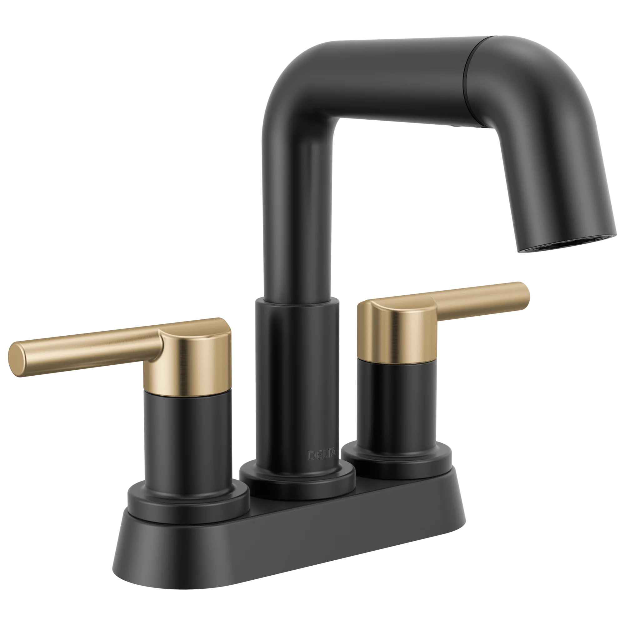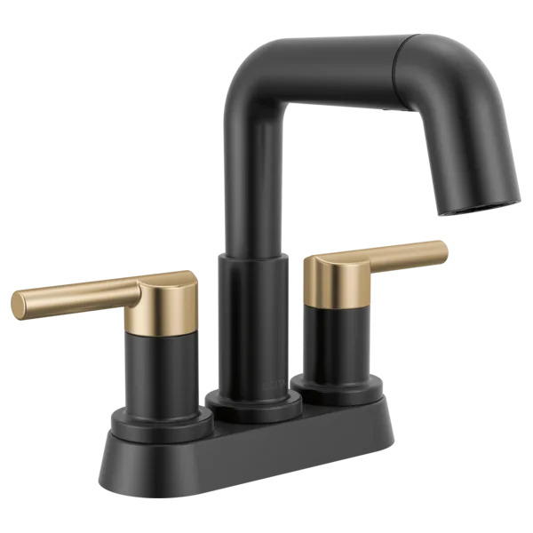 25849LF-GZPD Matte Black / Champagne Bronze Nicoli Two Handle Centerset Pull-Down Bathroom Faucet