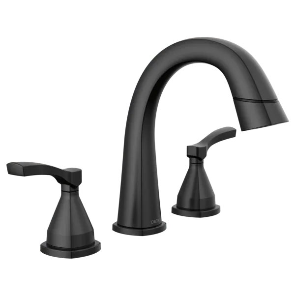 35775-BLPD-DST Matte Black Stryke Two Handle Widespread Pull Down Bathroom Faucet