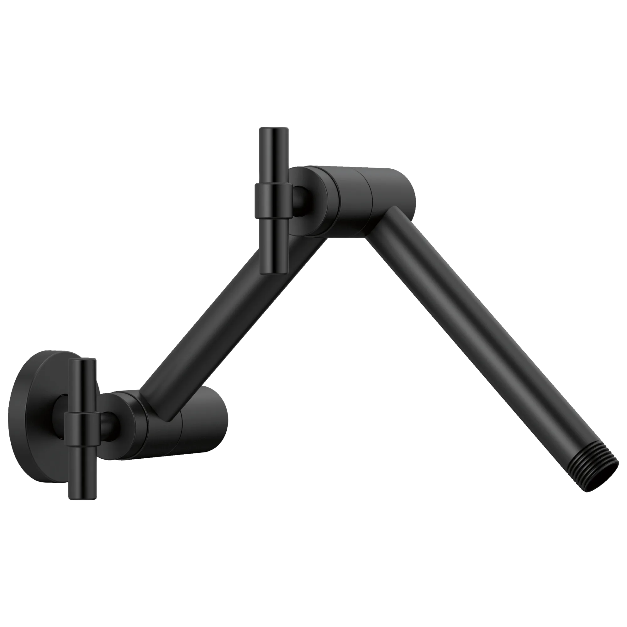 RP81434BL Matte Black Essential Shower: Linear Round Jointed Wall Mount Shower Arm And Flange