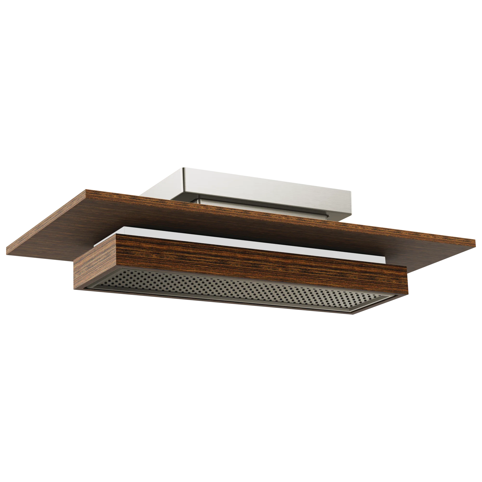81422-NKTK Luxe Nickel / Teak Wood Frank Lloyd Wright 21” Single-Function Raincan Shower Head with Integrated Lighting – 1.75 GPM