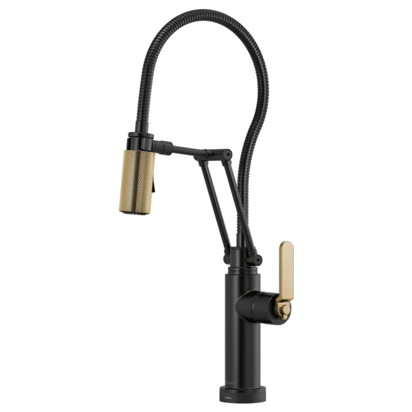 64144LF-BLGL Matte Black/Luxe Gold Litze SmartTouch Articulating Kitchen Faucet With Finished Hose