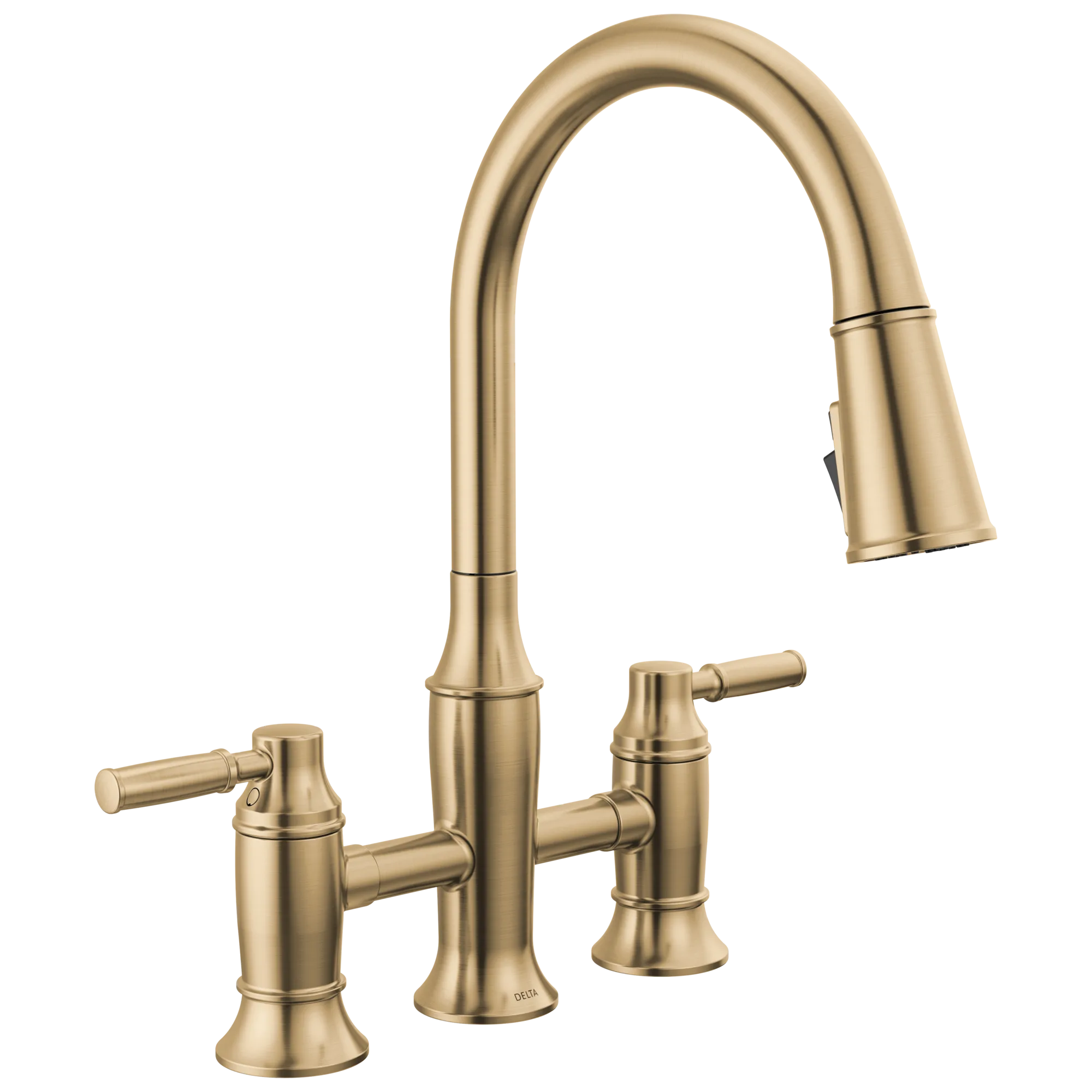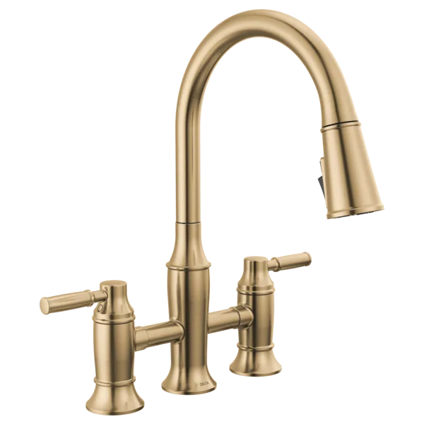 2384L-CZ-PR-DST Lumicoat Champagne Bronze Renaldi Two Handle Pull-Down Bridge Kitchen Faucet
