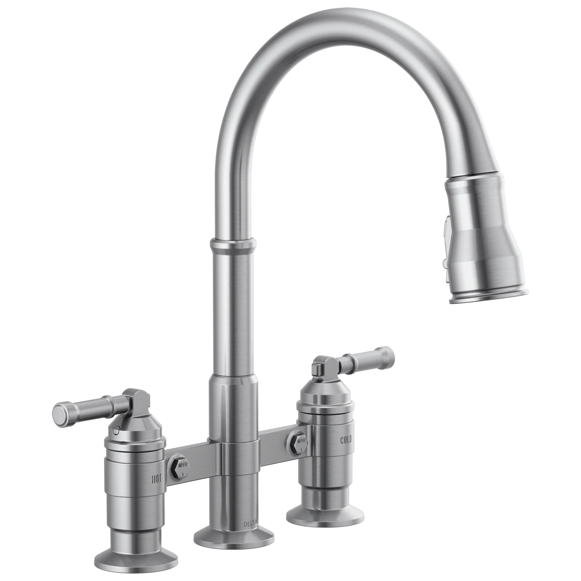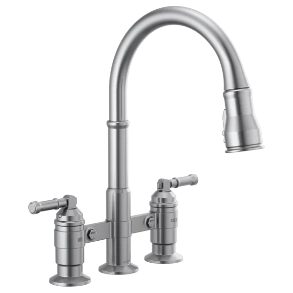 2390L-AR-DST Stainless Steel Broderick Two Handle Pull-Down Bridge Kitchen Faucet