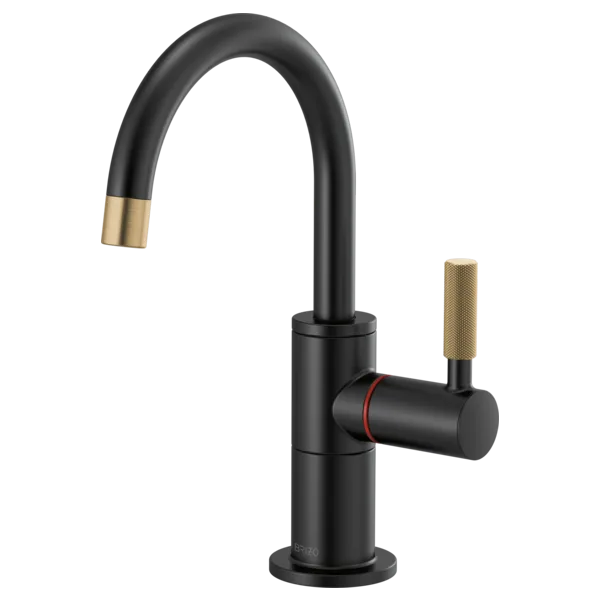 61343LF-H-BLGL Matte Black/Luxe Gold Litze Instant Hot Faucet with Arc Spout and Knurled Handle