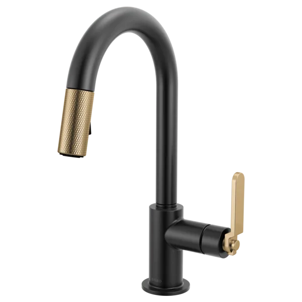 63944LF-BLGL Matte Black/Luxe Gold Litze Pull-Down Prep Faucet with Arc Spout – Industrial Handle