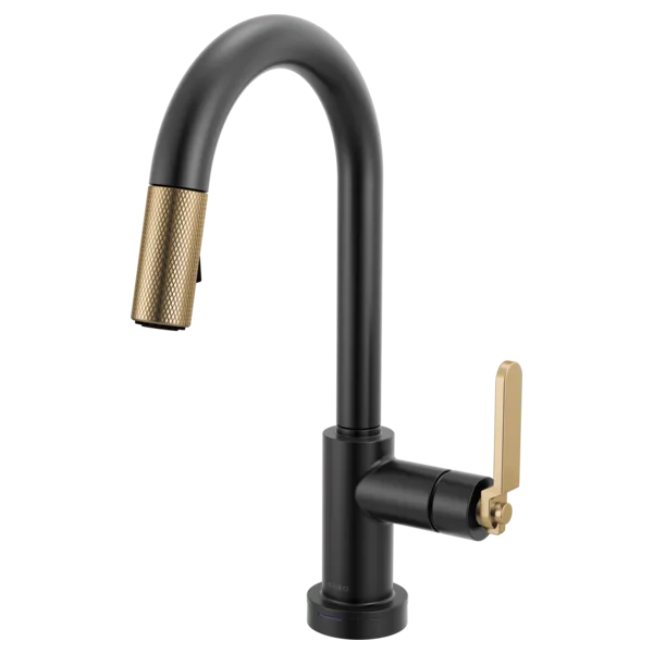 64944LF-BLGL Matte Black/Luxe Gold Litze Smarttouch Pull-Down Prep Faucet with Arc Spout – Industrial Handle