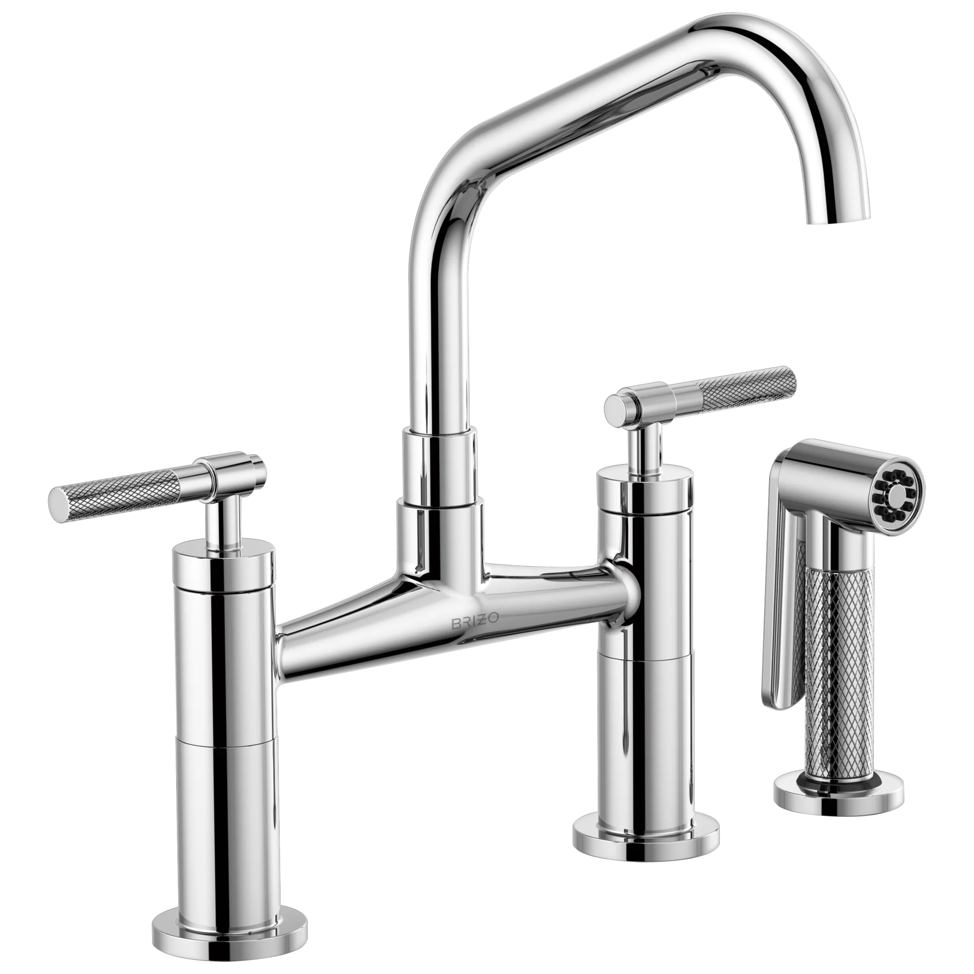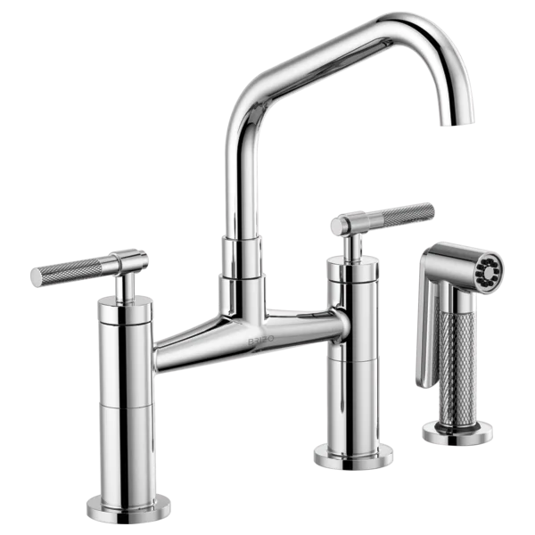 62563LF-PC Polished Chrome Litze Bridge Faucet with Angled Spout and Knurled Handle