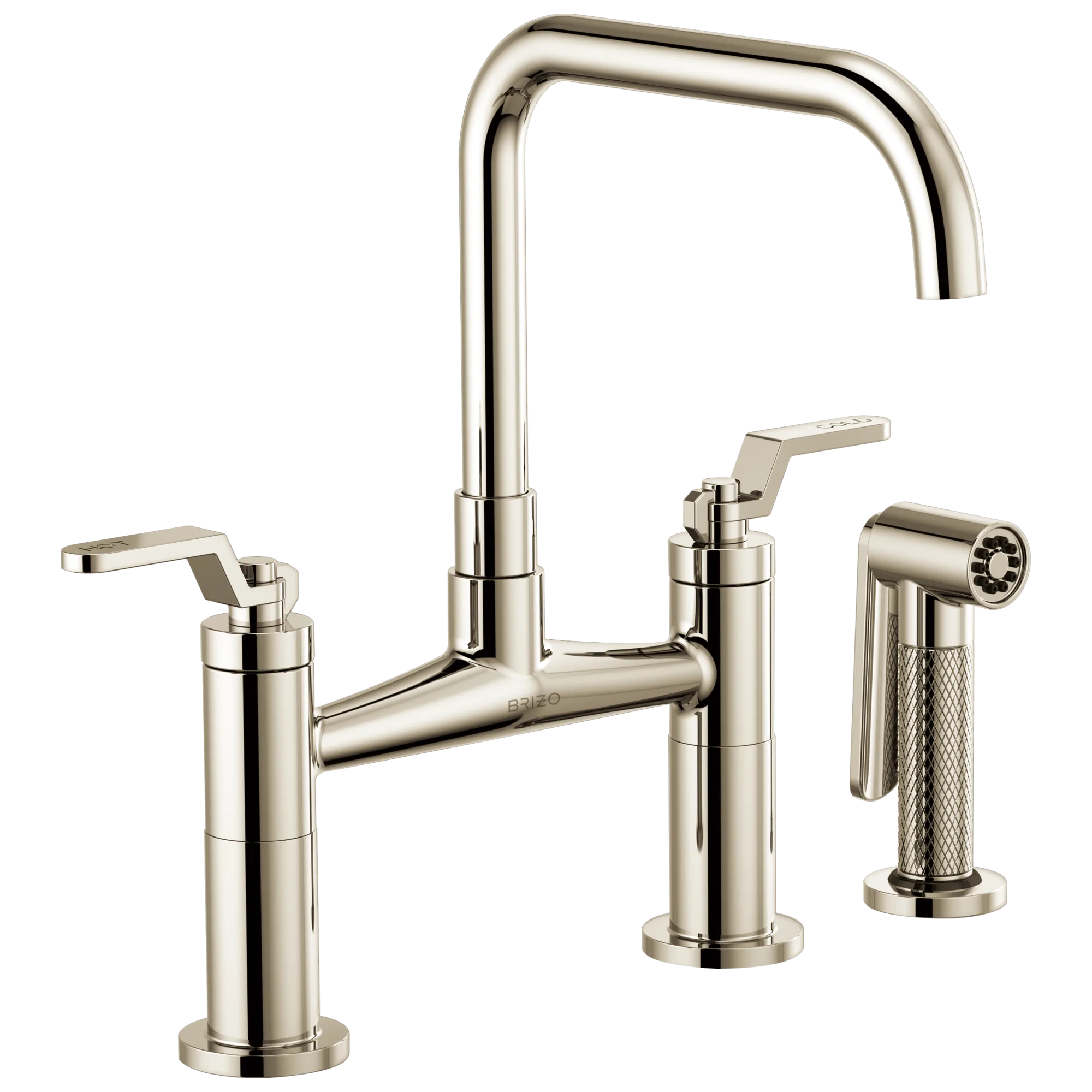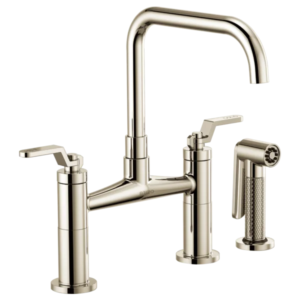 62554LF-PN Polished Nickel Litze Bridge Faucet with Square Spout and Industrial Handle