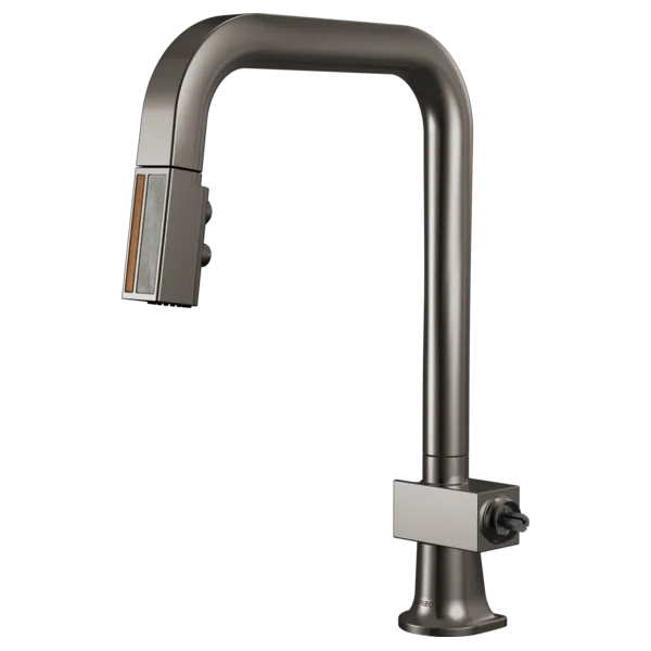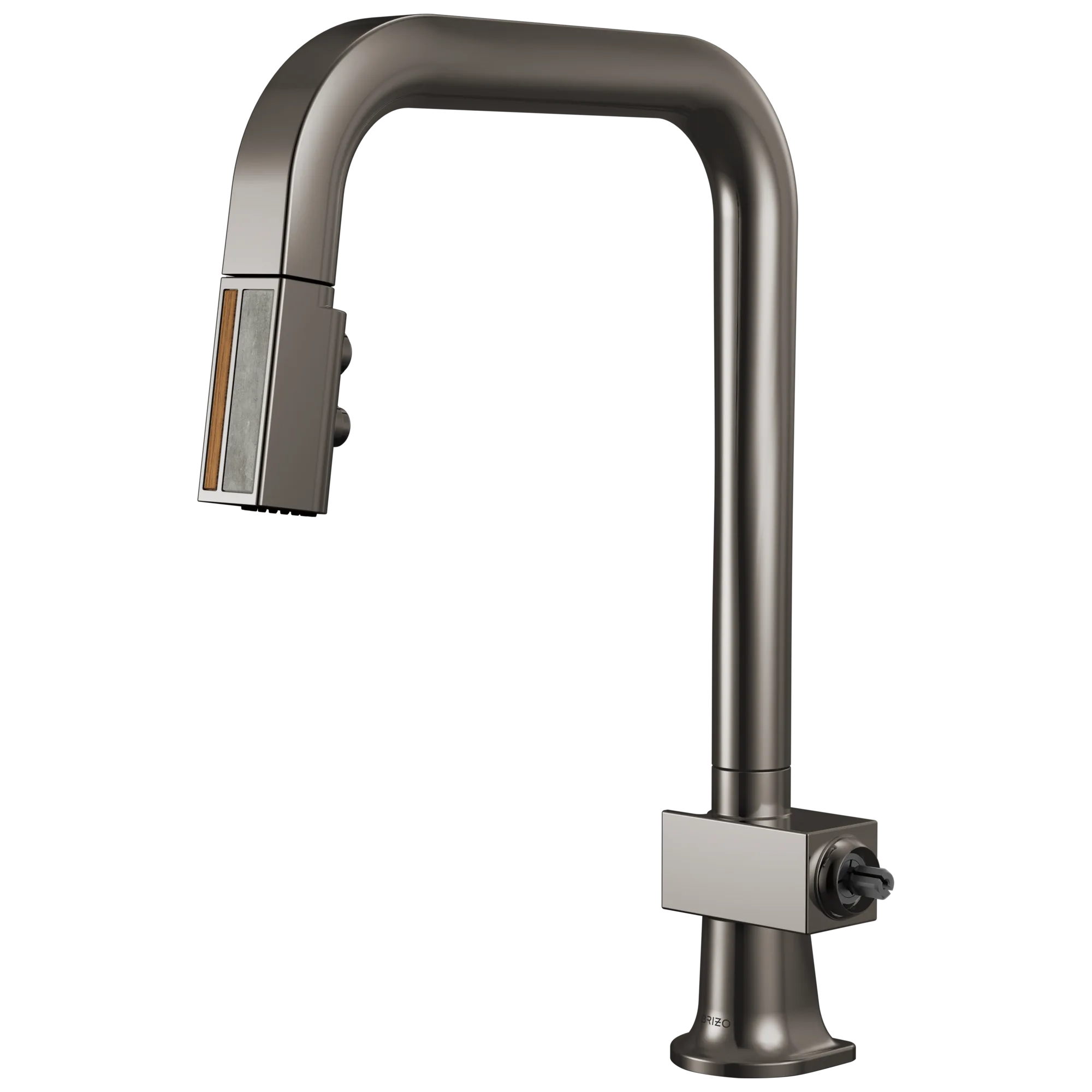 63023LF-BNXWDLHP Brilliance Black Onyx / Wood Frank Lloyd Wright Pull-Down Kitchen Faucet with Square Spout and Wood/Concrete Wand – Less Handle
