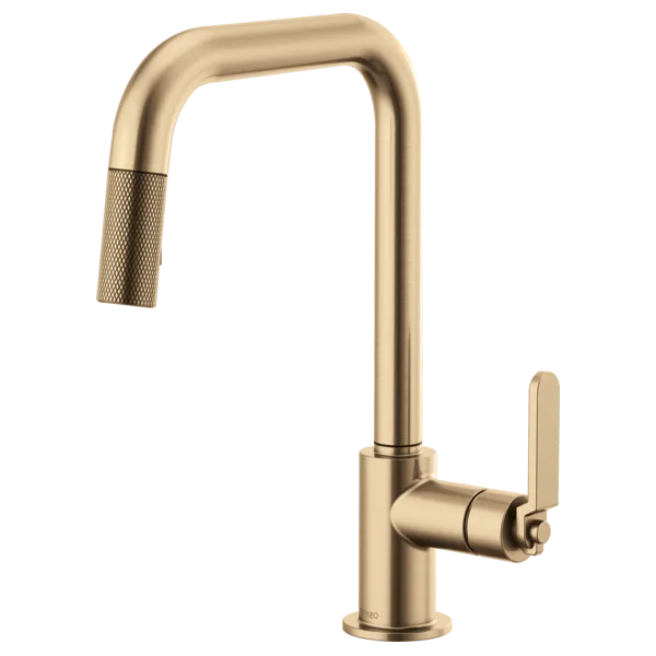 63054LF-GL Luxe Gold Litze Pull-Down Faucet with Square Spout and Industrial Handle