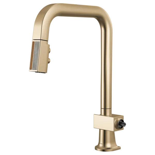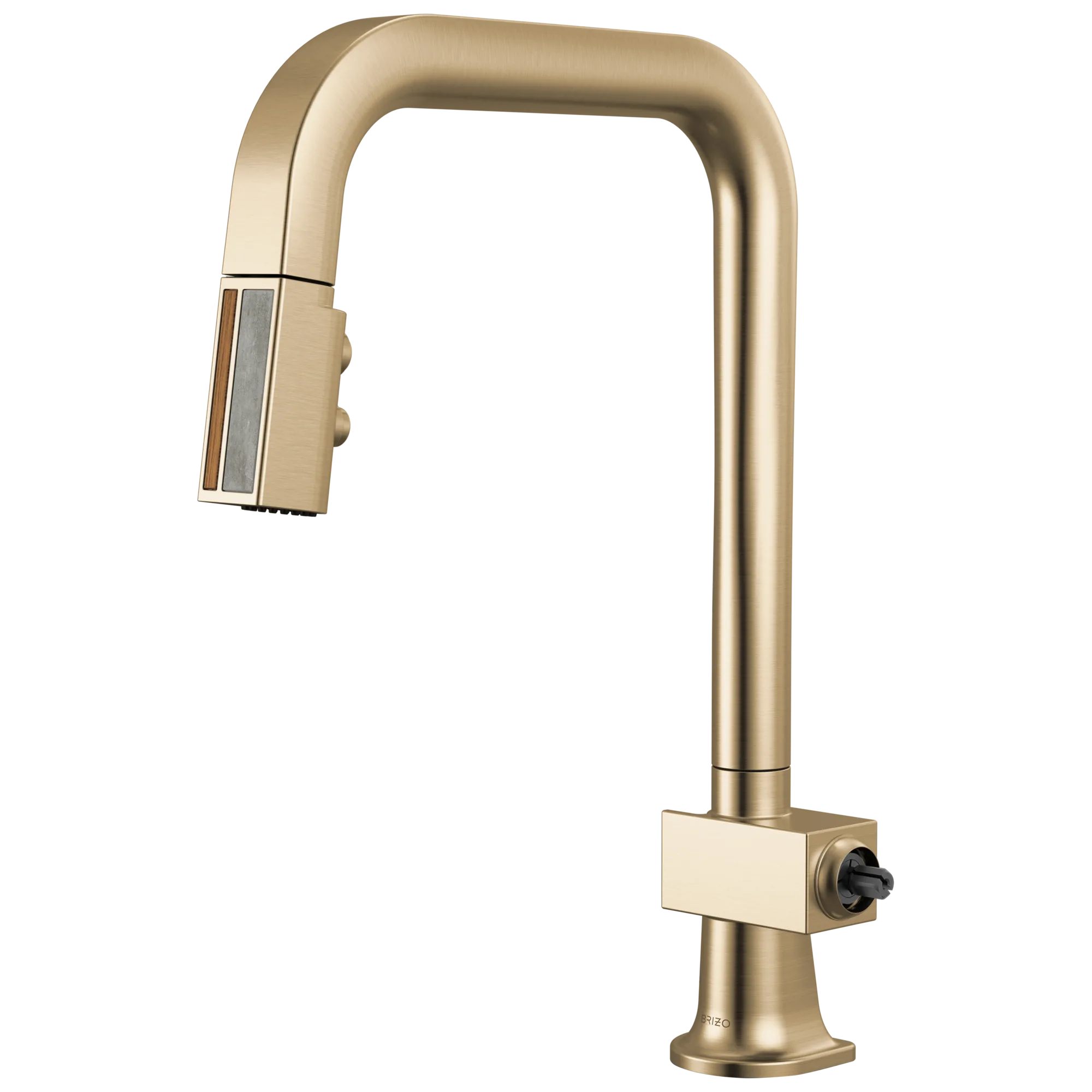 63023LF-GLWDLHP Luxe Gold / Wood Frank Lloyd Wright Pull-Down Kitchen Faucet with Square Spout and Wood/Concrete Wand – Less Handle