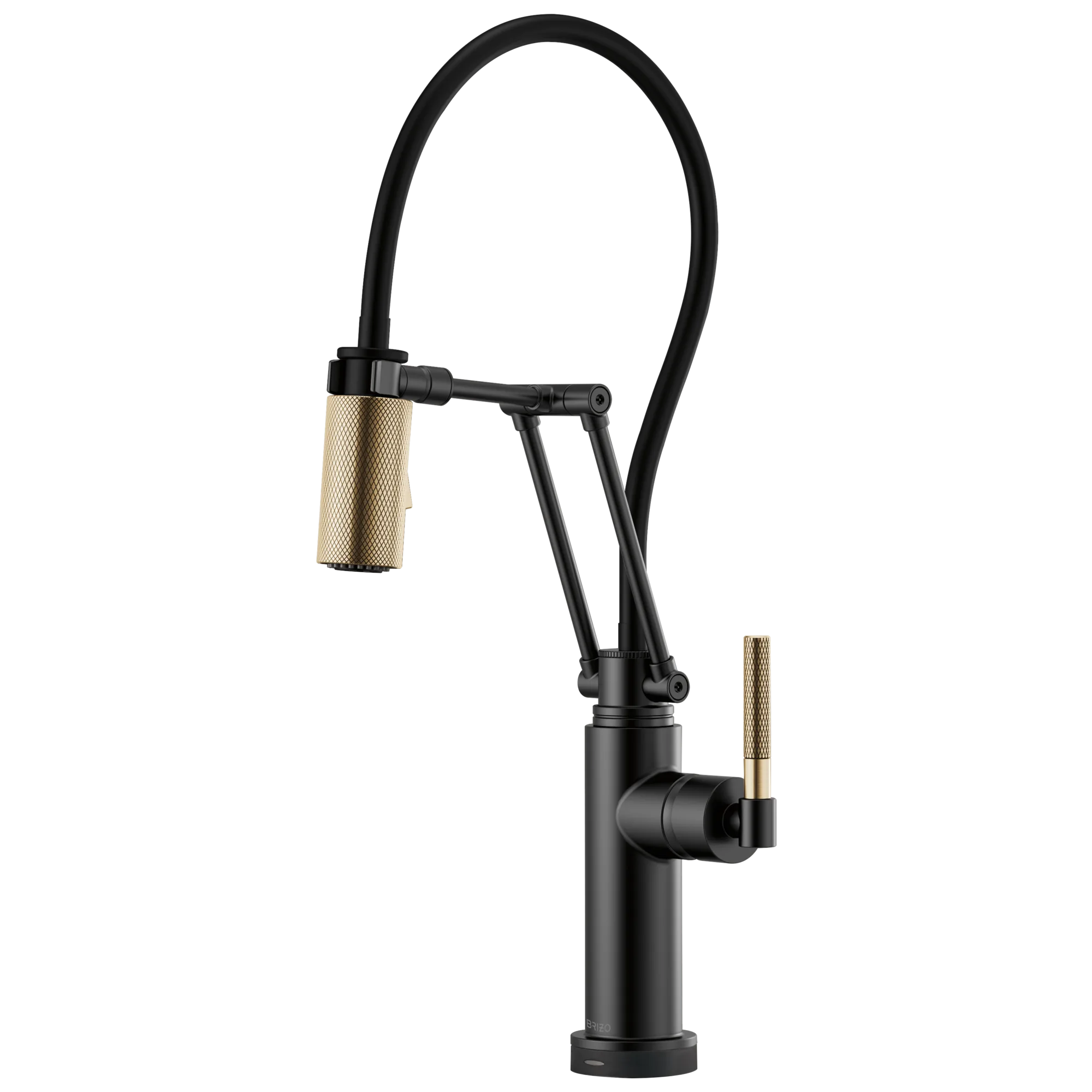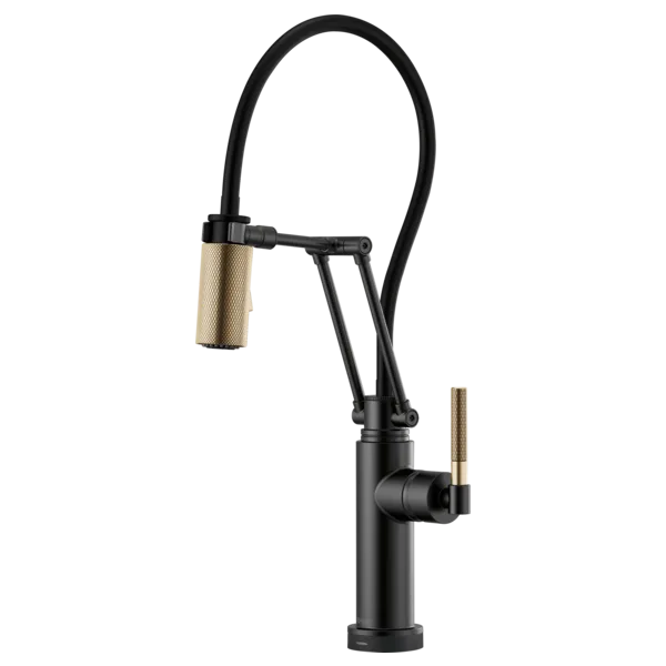 64243LF-BLGL Matte Black/Luxe Gold Litze SmartTouch Articulating Kitchen Faucet with Knurled Handle