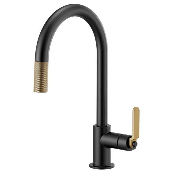 63044LF-BLGL Matte Black/Luxe Gold Litze Pull-Down Faucet with Arc Spout and Industrial Handle
