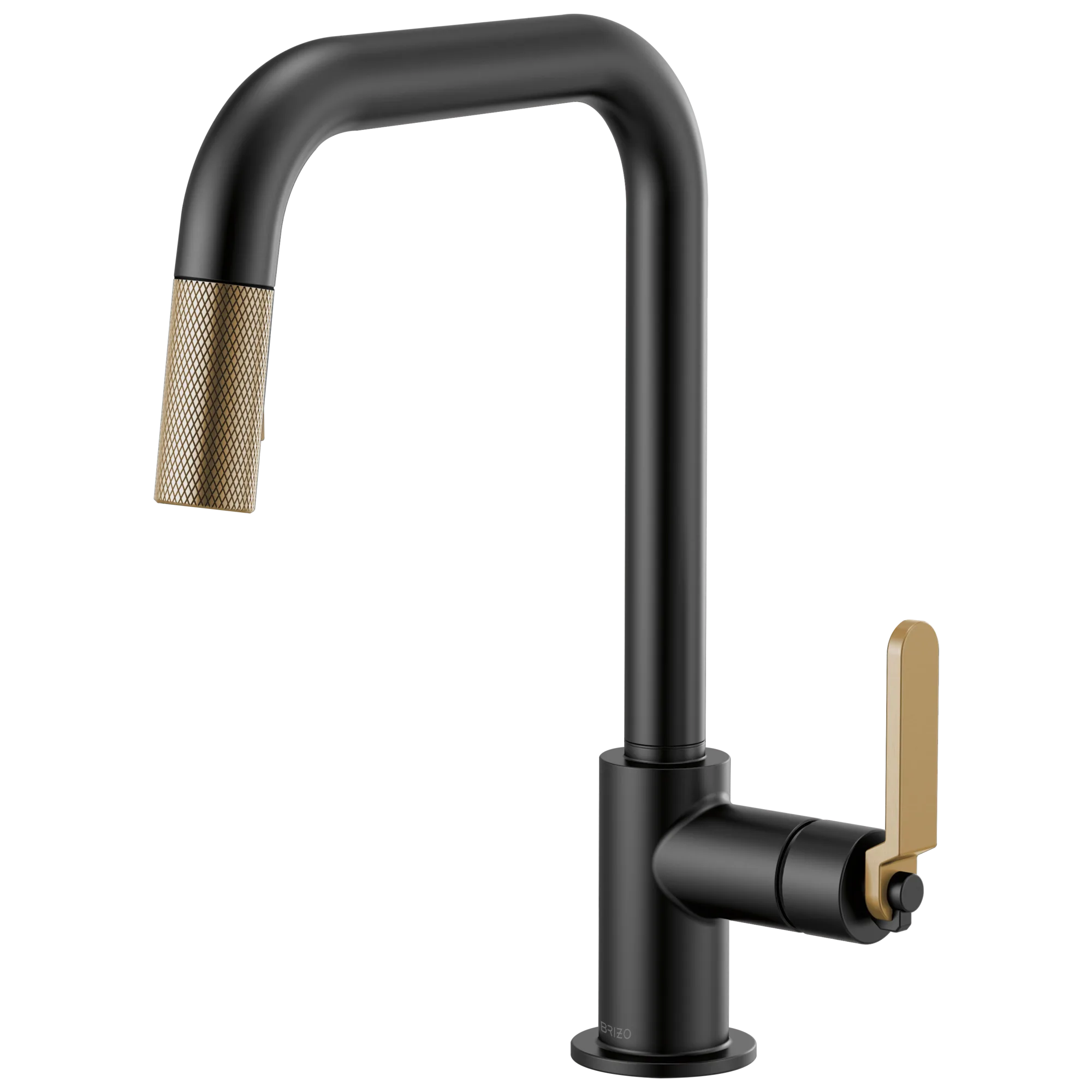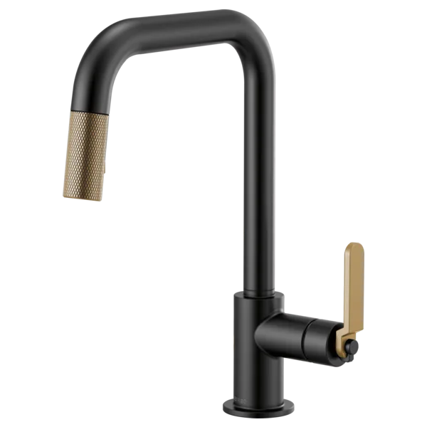 63054LF-BLGL Matte Black/Luxe Gold Litze Pull-Down Faucet with Square Spout and Industrial Handle