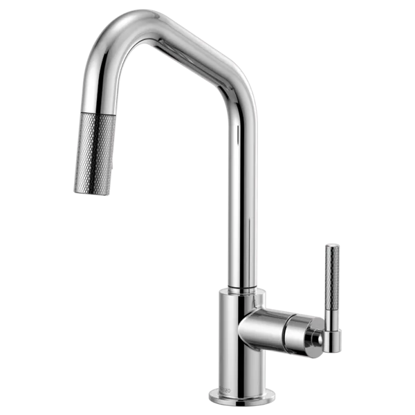 63063LF-PC Polished Chrome Litze Pull-Down Faucet with Angled Spout and Knurled Handle