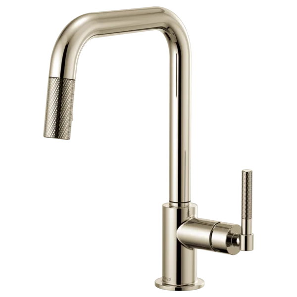 63053LF-PN Polished Nickel Litze Pull-Down Faucet with Square Spout and Knurled Handle