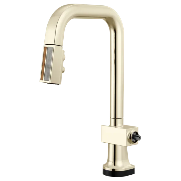 64923LF-PNWDLHP Polished Nickel / Wood Frank Lloyd Wright SmartTouch Pull-Down Prep Faucet with Square Spout and Wood/Concrete Wand – Less Handle