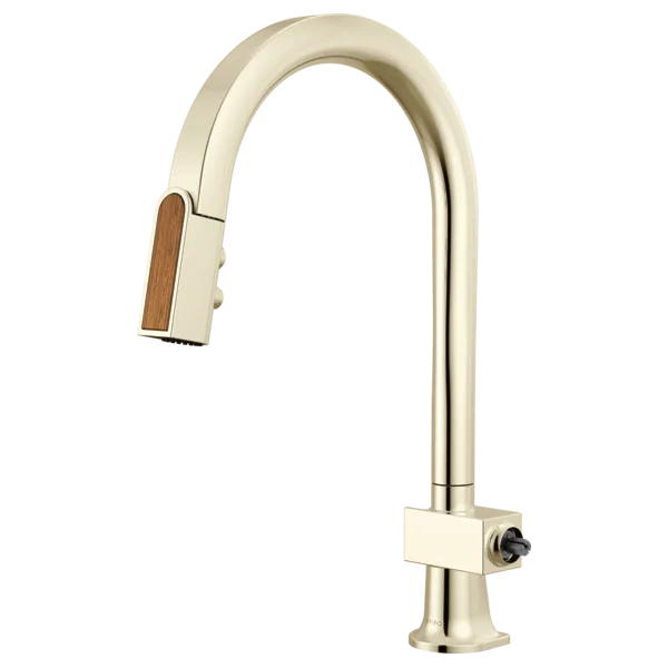 63022LF-PNWDLHP Polished Nickel / Wood Frank Lloyd Wright Pull-Down Kitchen Faucet with Arc Spout and Wood Wand – Less Handle