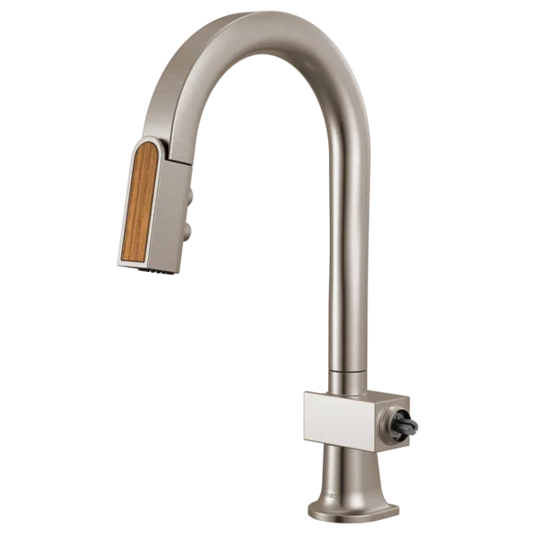 63922LF-SSWDLHP Stainless Steel/ Wood Frank Lloyd Wright Pull-Down Prep Faucet with Arc Spout and Wood Wand – Less Handle