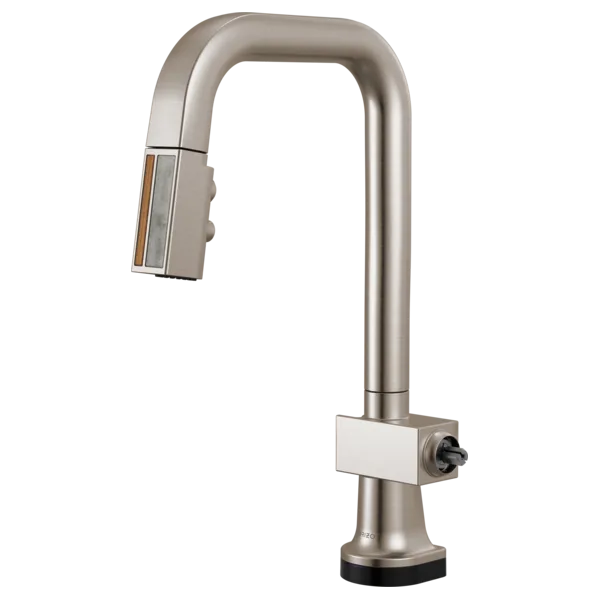 64923LF-SSWDLHP Stainless Steel/ Wood Frank Lloyd Wright SmartTouch Pull-Down Prep Faucet with Square Spout and Wood/Concrete Wand – Less Handle