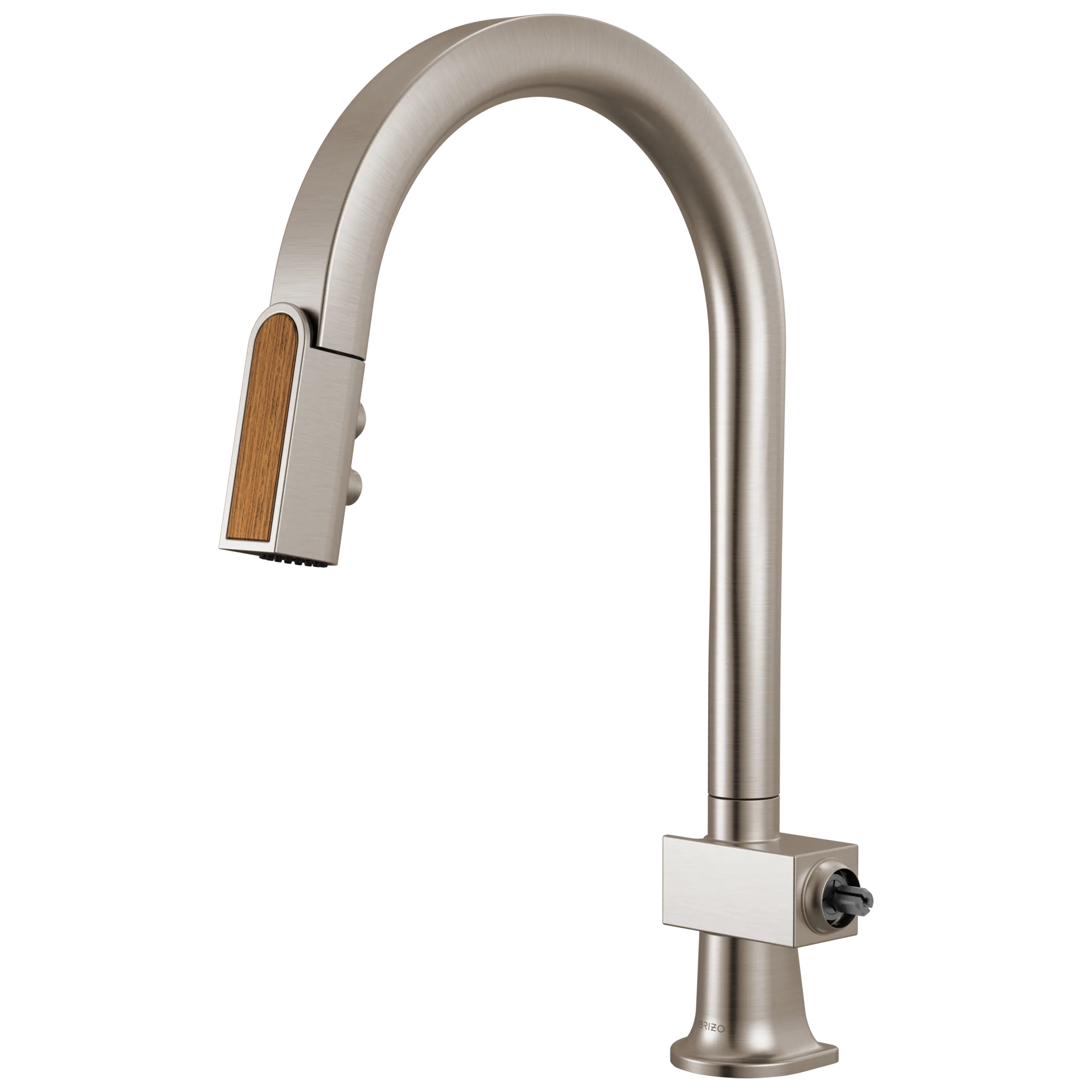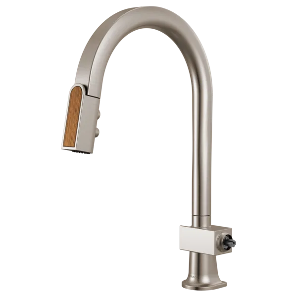 63022LF-SSWDLHP Stainless Steel/ Wood Frank Lloyd Wright Pull-Down Kitchen Faucet with Arc Spout and Wood Wand – Less Handle