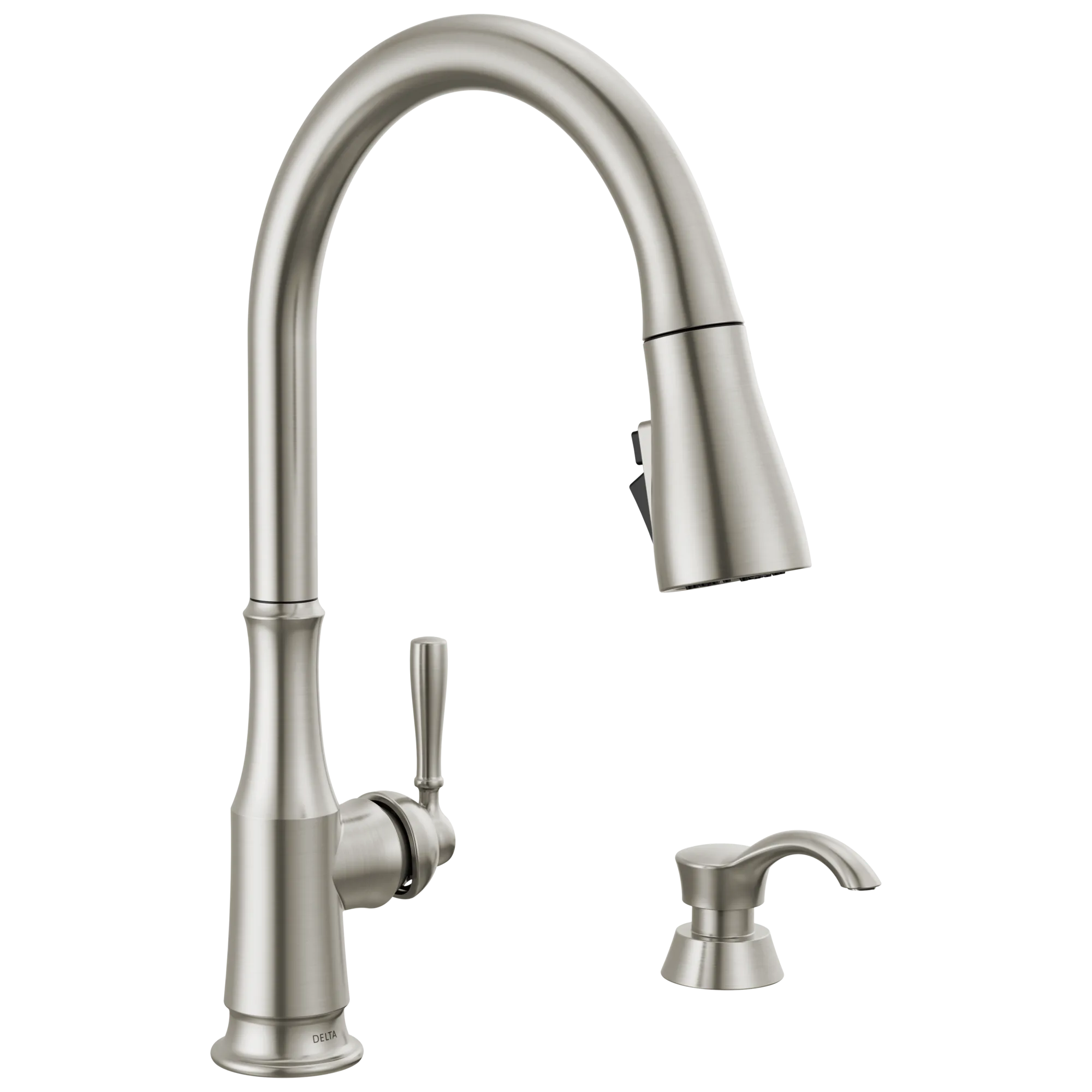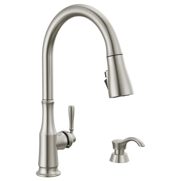 19877Z-SPSD-DST Spotshield Stainless Steel Capertee Single Handle Pull-Down Kitchen Faucet with Soap Dispenser and ShieldSpray Technology