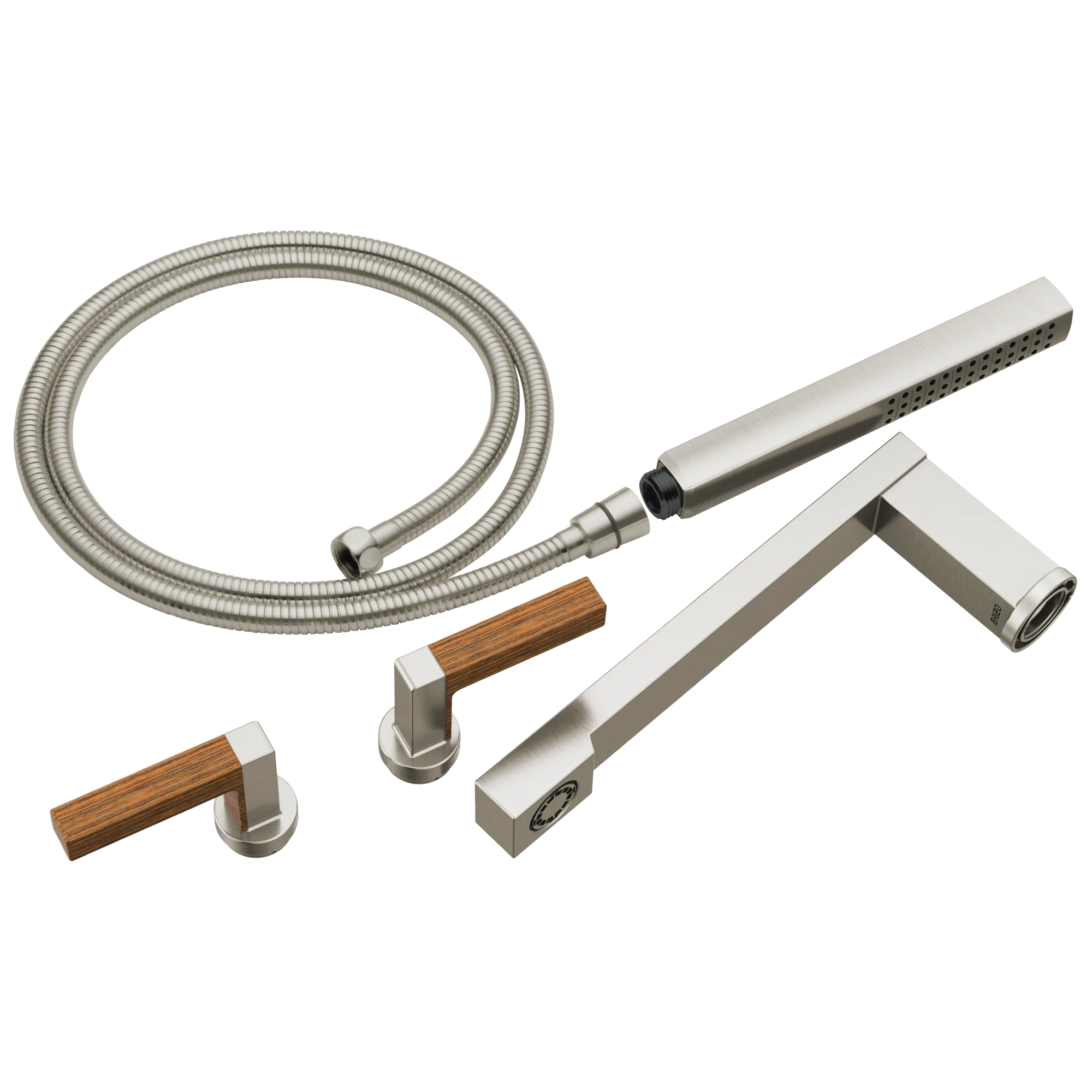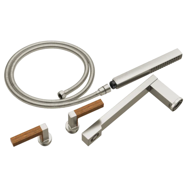 T70322-NKTK Luxe Nickel / Teak Wood Frank Lloyd Wright Two-Handle Tub Filler Trim Kit with Lever Handles
