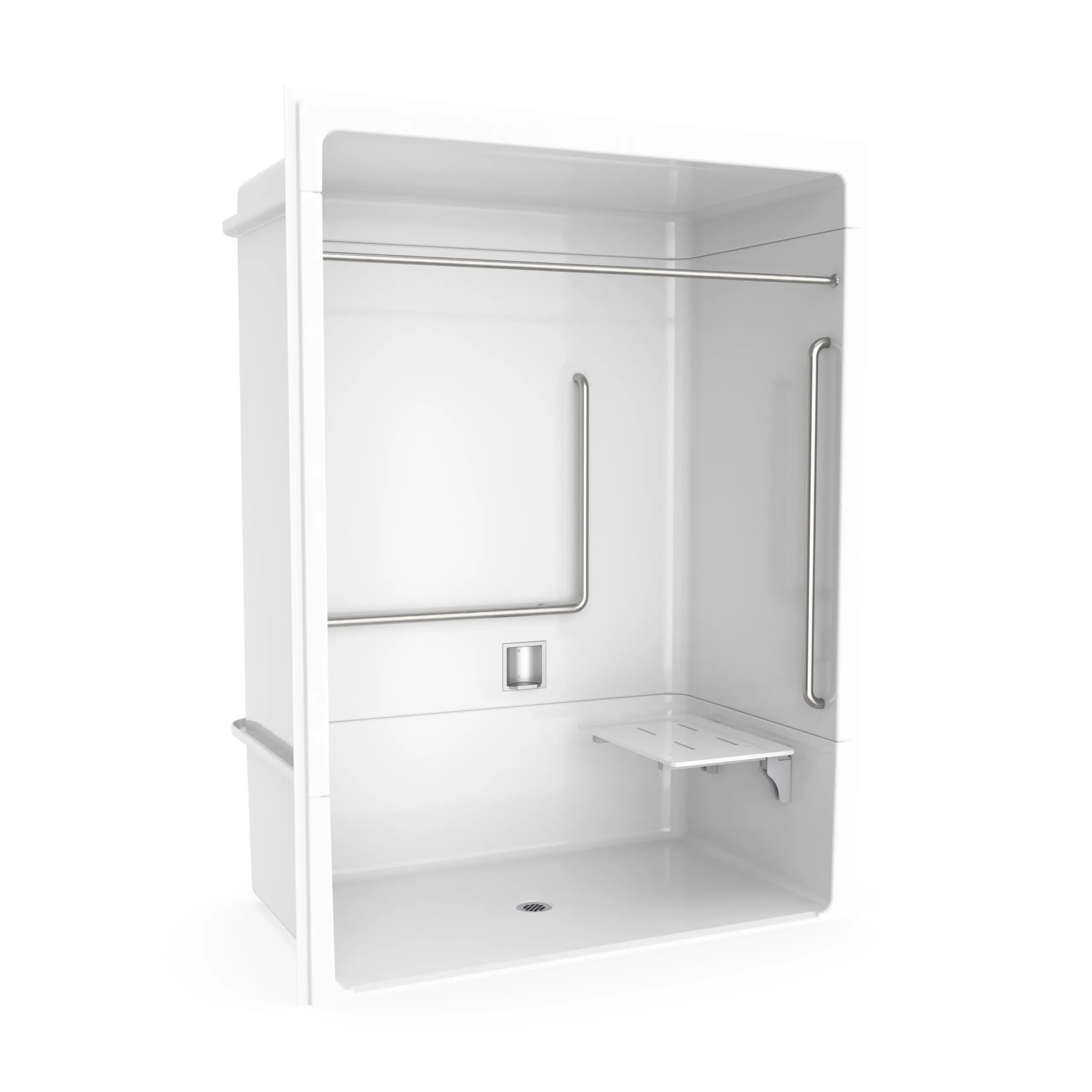 Be the first to review “Banff BFS-6036A – NBC Alberta Compliant Acrylic Alcove Center Drain Beveled Threshold Three-Piece Shower in White with Right Rectangular Naugahyde Seat” Cancel reply