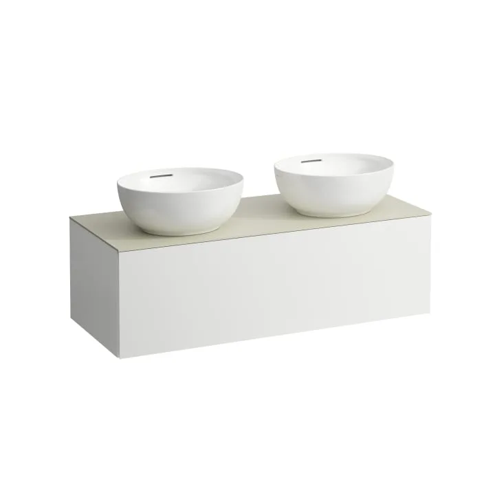 Drawer element 1200, 1 Drawer, with cut out left and right, Calce Avorio Top with tap cut-out, matches washbasin H818975/6