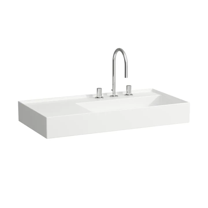 Washbasin, shelf left, with concealed outlet, w/o overflow – Always Open Drain, wall mounted