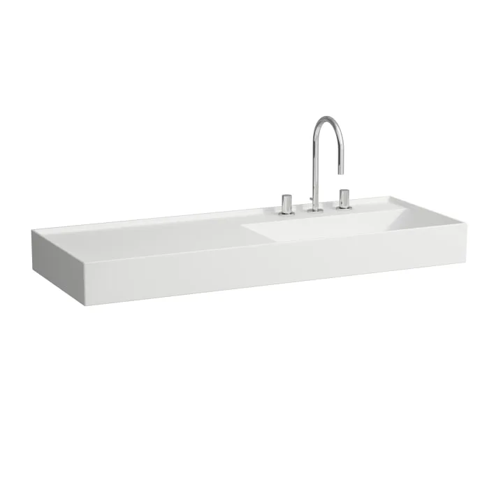 Washbasin, shelf left, with concealed outlet, w/o overflow – Always Open Drain, wall mounted