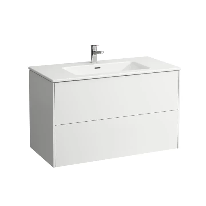 Combipack 1000 mm, washbasin ‘slim’ with vanity unit ‘Base’ with 2 drawers, incl. drawer organizer, wall mounted