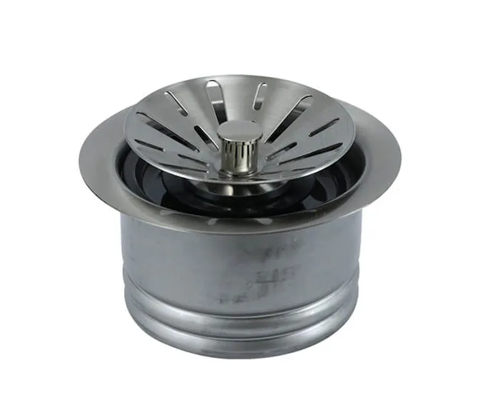 This stopper/strainer unit works with the following waste disposer models: Insinkerator (ISE) – old & new models Kenmore Maytag Ace Jenn-Air Kitchen Aid Whirlpool Perfect Grind® 3-Bolt Mount For disposers with 3-3/8″ I.D. and 3 bolt mounting Now matching waste disposer trim is available for use with your thicker fireclay sink. Disposer flange with extended throat for thicker sink installations Fits sinks up to 1-3/4″ thick