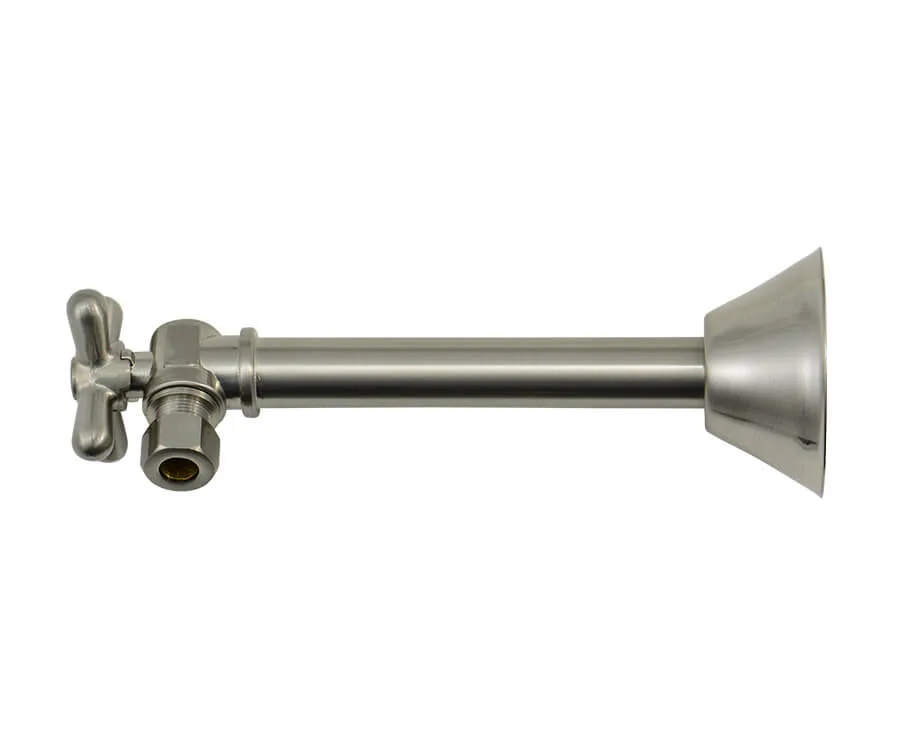 This straight sweat valve is a contemporary styled valve with a lever handle. Includes 5″ sweat extension and 11/16″ bell flange 1/2″ Copper Sweat Inlet x 3/8″ O.D. Compression Outlet